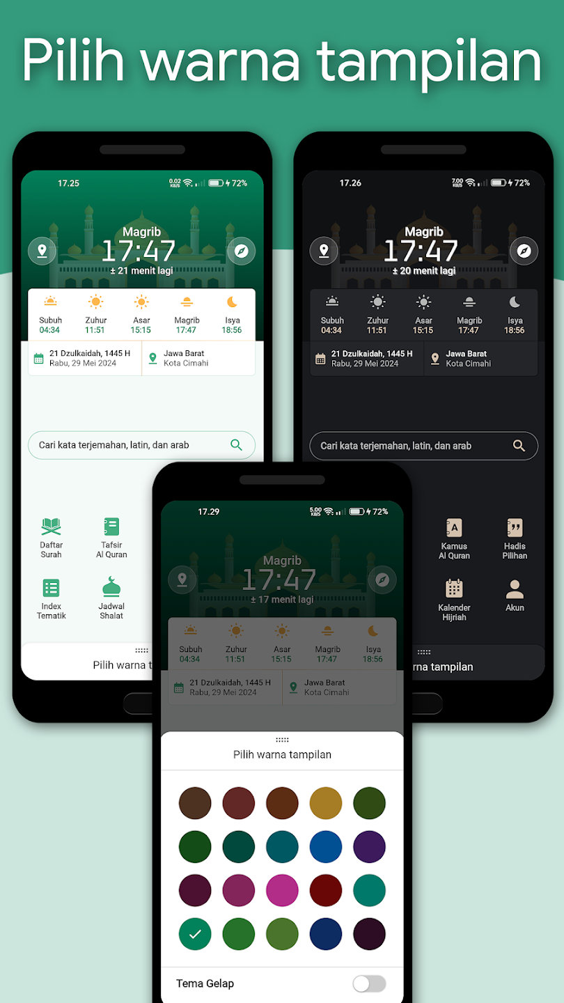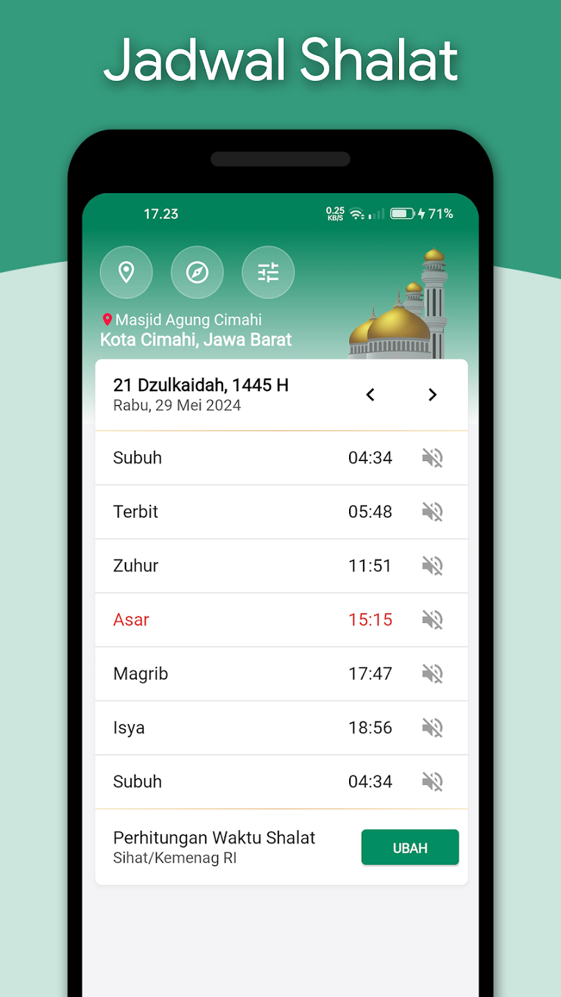 Selain untuk mempelajari Al-Quran beserta tafsirnya, aplikasi ini juga memiliki beberapa fitur tambahan seperti pengingat sholat melalui jadwal yang disesuaikan otomatis berdasarkan lokasimu.