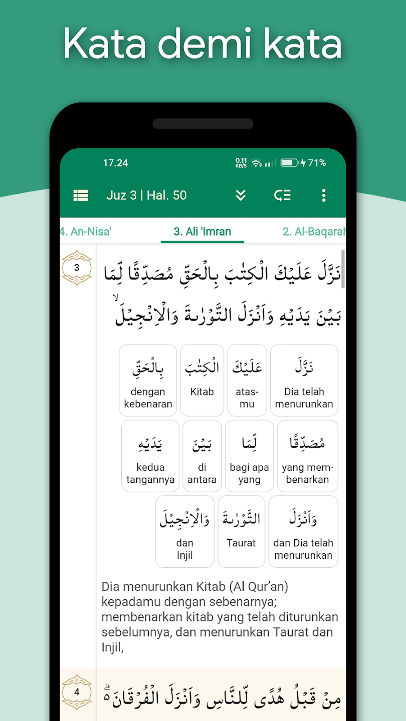 Al Quran dan Tafsir Ibnu Kasir menjamin kamu akan selalu mendapatkan penafisiran yang rinci pada setiap kata yang terhubung satu sama lain.