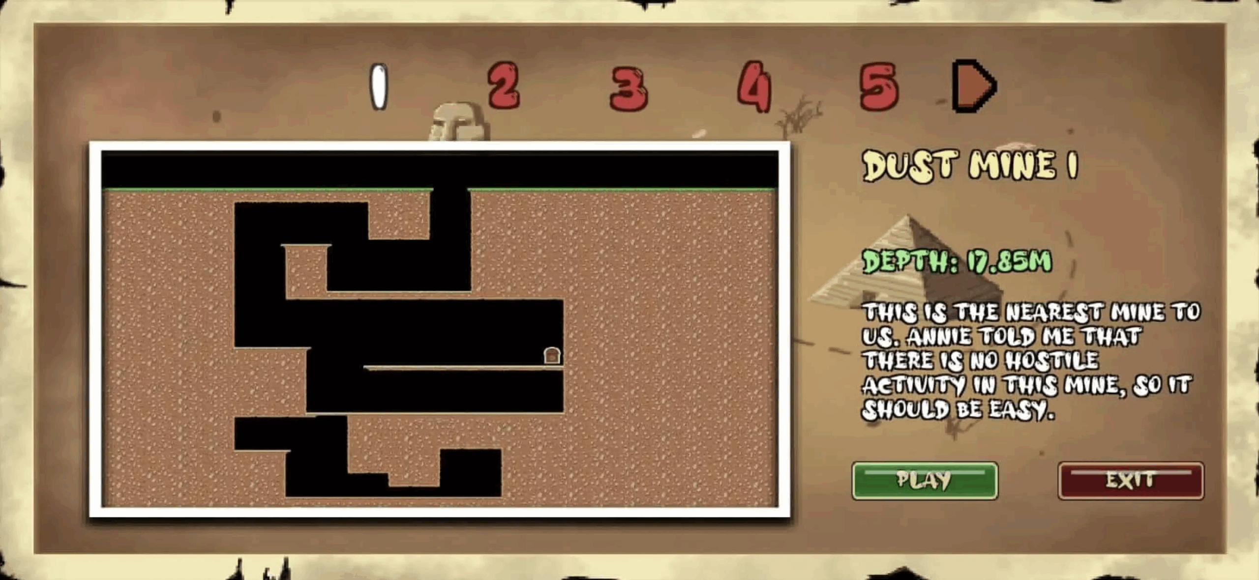Dibekali peralatan untuk menambang, kamu akan mulai menggali dari pintu masuk gua hingga ke kedalaman tanah yang jauh.