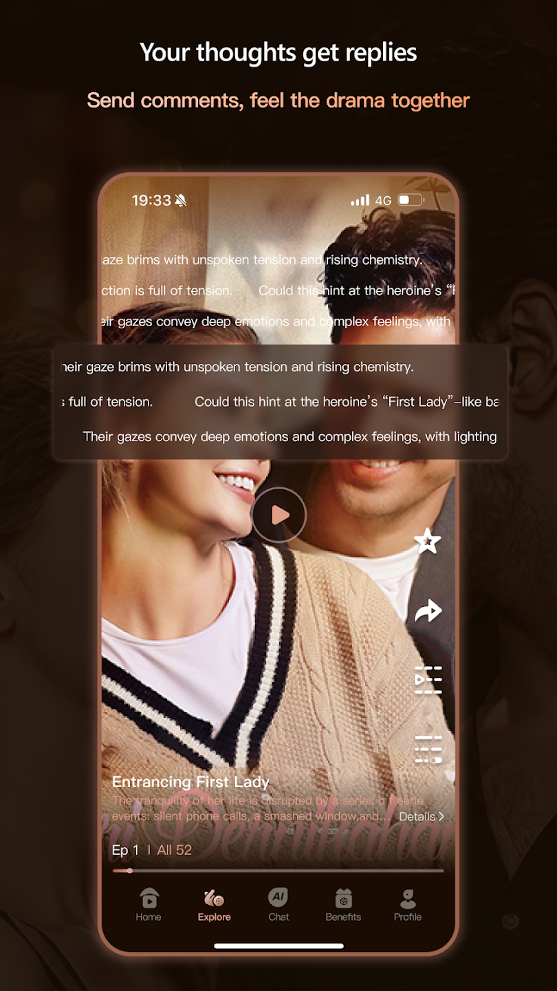 Aplikasi nonton drama pendek ini memiliki fitur sosialiasi yang memungkinkan kamu dan pengguna lainnya untuk saling berinteraksi lewat kolom komentar pada setiap episode drama yang sedang diputar.
