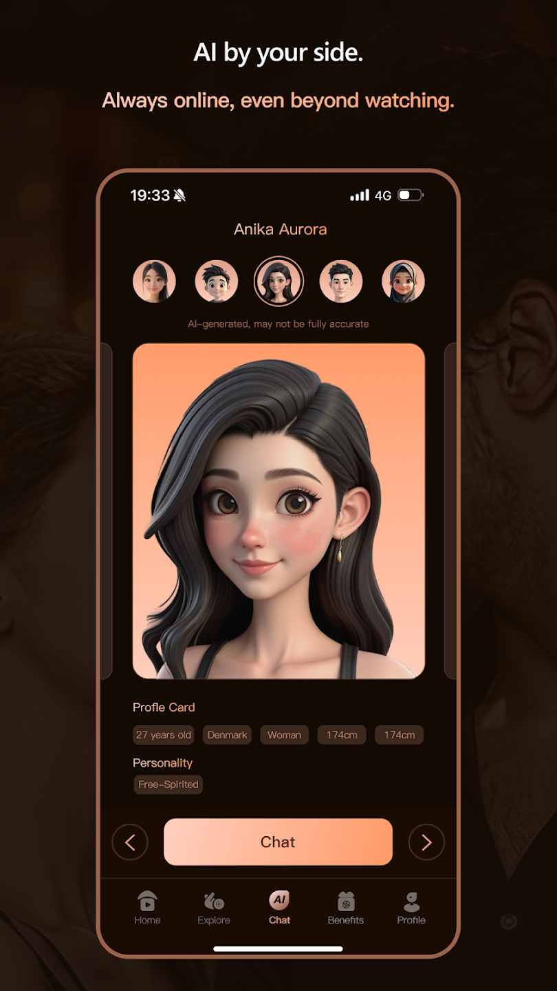 Selain menonton, kamu juga bisa mengobrol dengan pengguna lain maupun chatbot AI. Aplikasi menggabungkan fitur jejaring sosial yang menarik.
