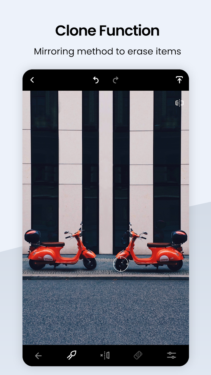 Salah satu fitur andalan TouchRetouch adalah object removal. Sesuai namnaya, ini merupakan fitur yang memungkinkanmu menghilangkan objek sesuai yang kamu inginkan. Setidaknya ada 4 tool yang bisa kamu manfaatkan yaitu lasso, brush, setting, dan eraser.